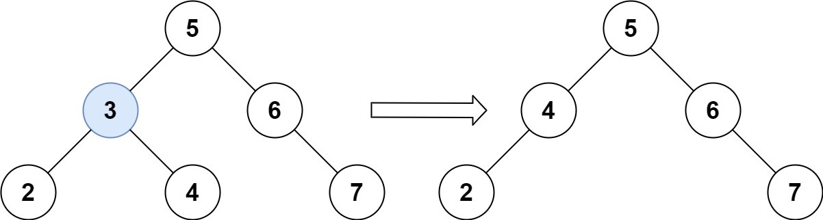 Input: root = [5,3,6,2,4,null,7], key = 3
