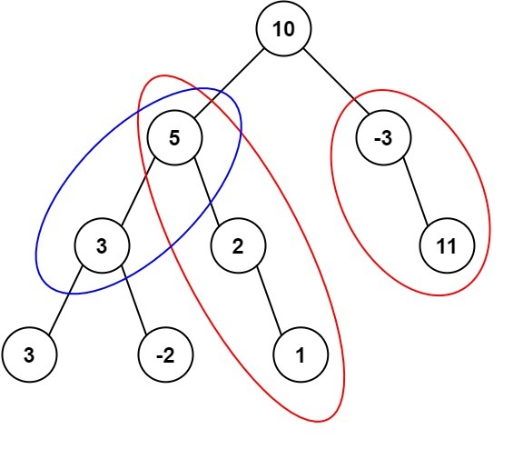 Input: root = [10,5,-3,3,2,null,11,3,-2,null,1], targetSum = 8